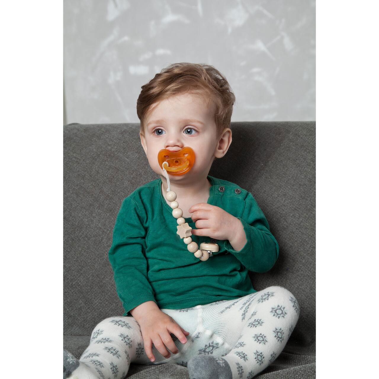 Suzeta este o alternativa ecologica la produsele petroliere sintetice, fiind fabricata din latex de cauciuc natural ecologic si durabil, obtinut din arborele Hevea care in general creste in Asia de Sud-Est. Nu contine materiale toxice sau coloranti, avand culoarea naturala de cauciuc. Acest produs indeplineste toate atuurile pentru a fi o alegere sigura pentru bebelusul tau.