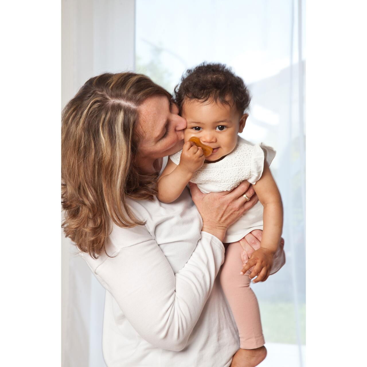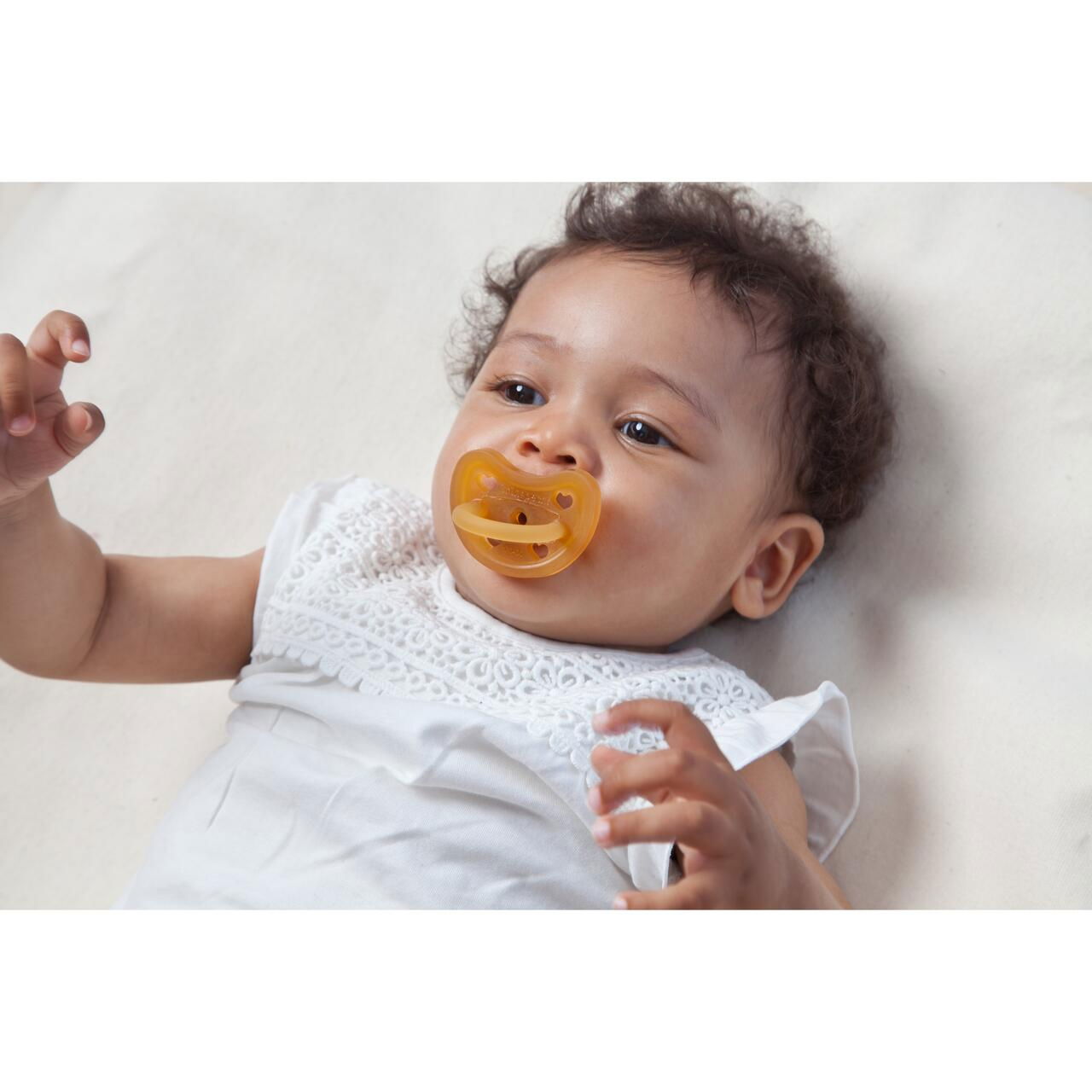 Suzeta este o alternativa ecologica la produsele petroliere sintetice, fiind fabricata din latex de cauciuc natural ecologic si durabil, obtinut din arborele Hevea care in general creste in Asia de Sud-Est. Nu contine materiale toxice sau coloranti, avand culoarea naturala de cauciuc. Acest produs indeplineste toate atuurile pentru a fi o alegere sigura pentru bebelusul tau.