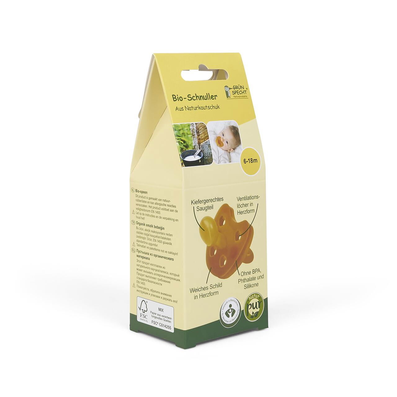 Suzeta ortodontica monobloc BIO, din latex de cauciuc organic, 6-18 luni Grunspecht 671-00