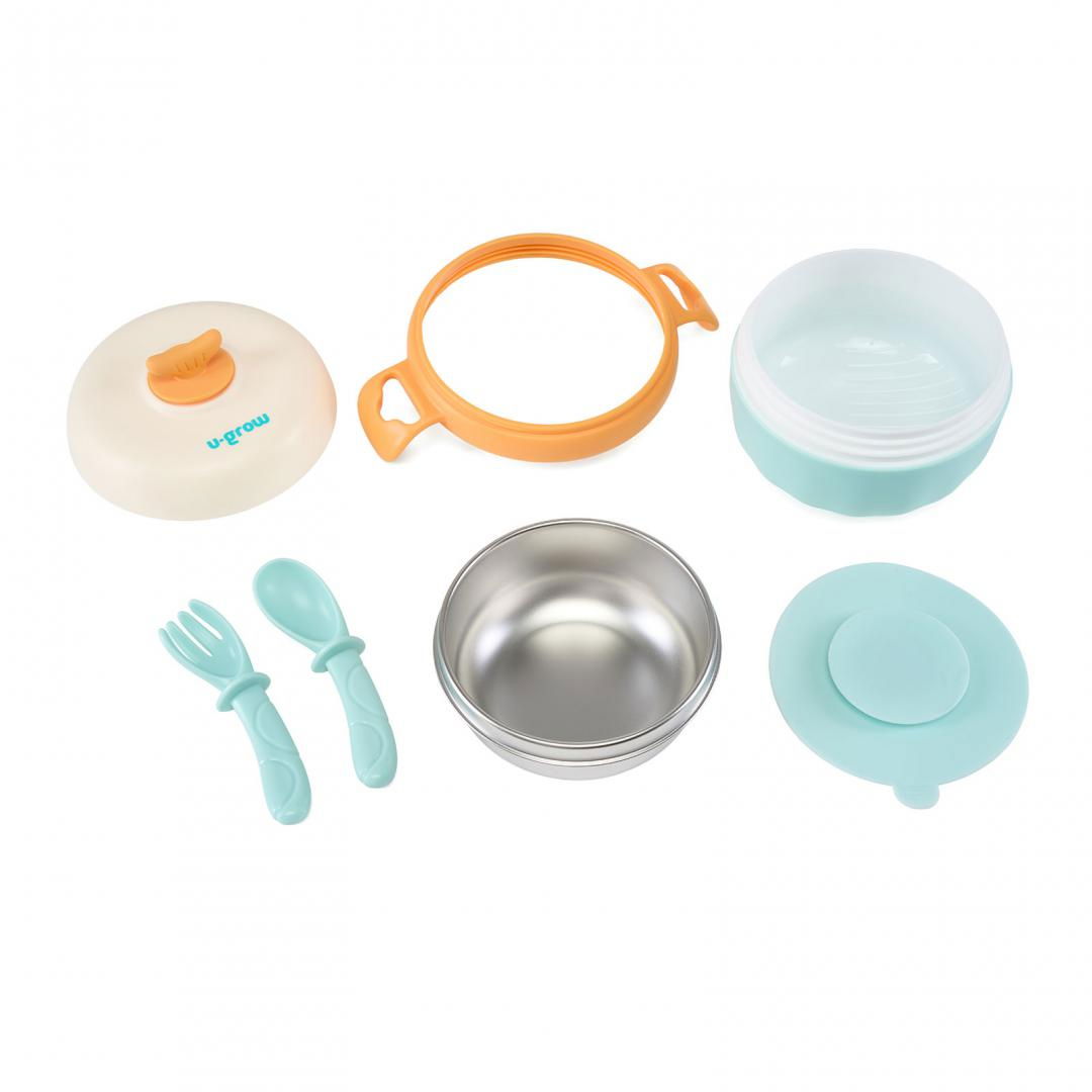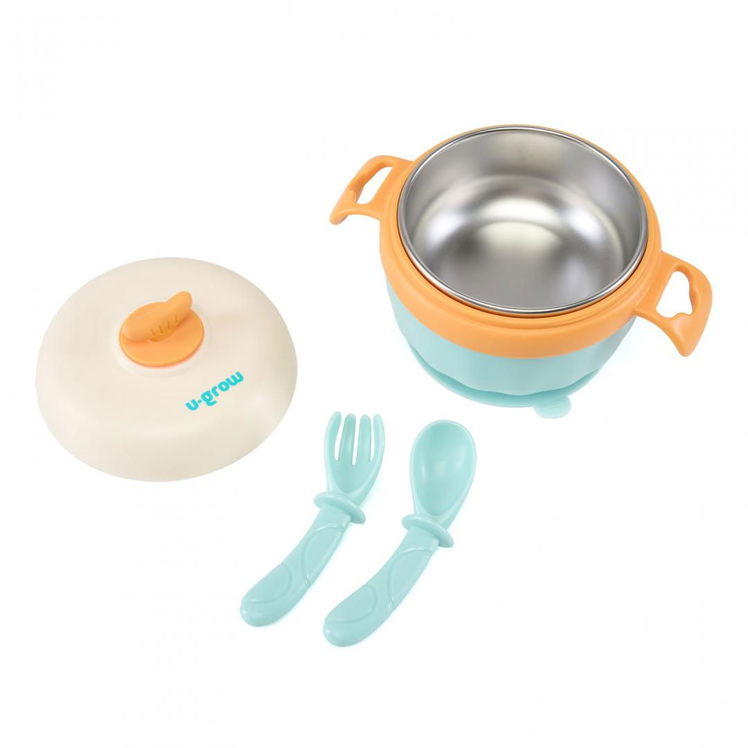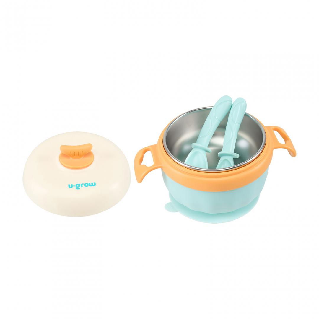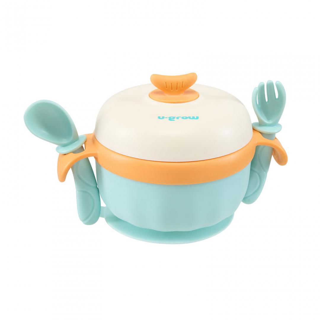 Bol termic , lingurita si furculita , baza antialunecare, blue, U-Grow