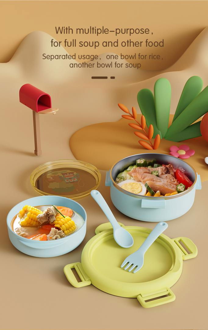 Setul contine si o lingurita si o furculita, adaugand un plus de comoditate. Caserola este conceputa pentru a preveni scurgerile de lichide sau mancare, astfel poti fi sigur ca alimentele raman bine inchise si protejate indiferent de modul in care caserola este transportata.