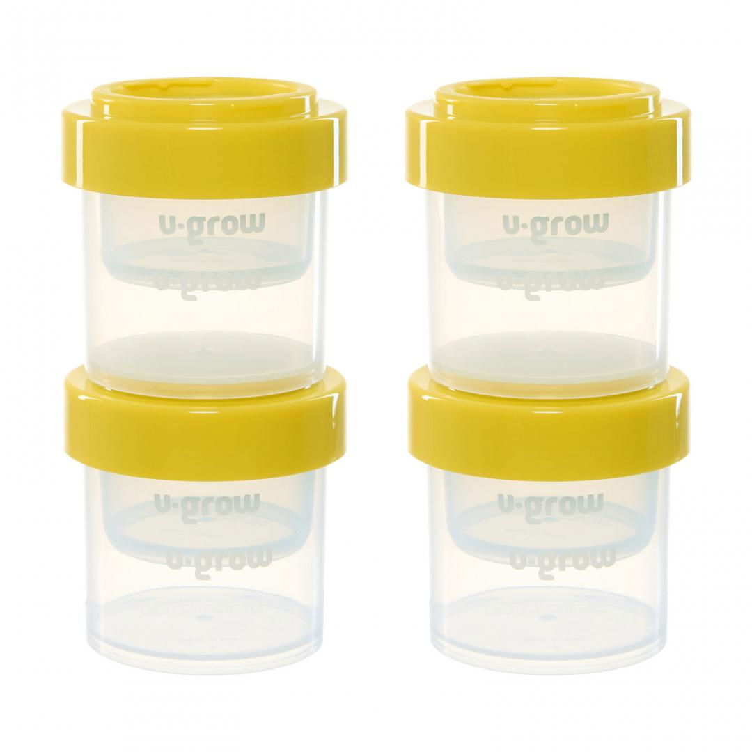 Recipientele pentru stocarea alimentelor U-Grow sunt versatile, usor de utilizat si concepute sa creasca odata cu bebelusul tau. Acestea sunt ideale pentru pastrarea alimentelor atat acasa, cat si in deplasare. Setul este compus din 4 recipiente de 80 ml si 4 recipiente de 220 ml. Capacul se fixează perfect și este etanș, nu se vor scurge niciodată dacă este corect fixat.n