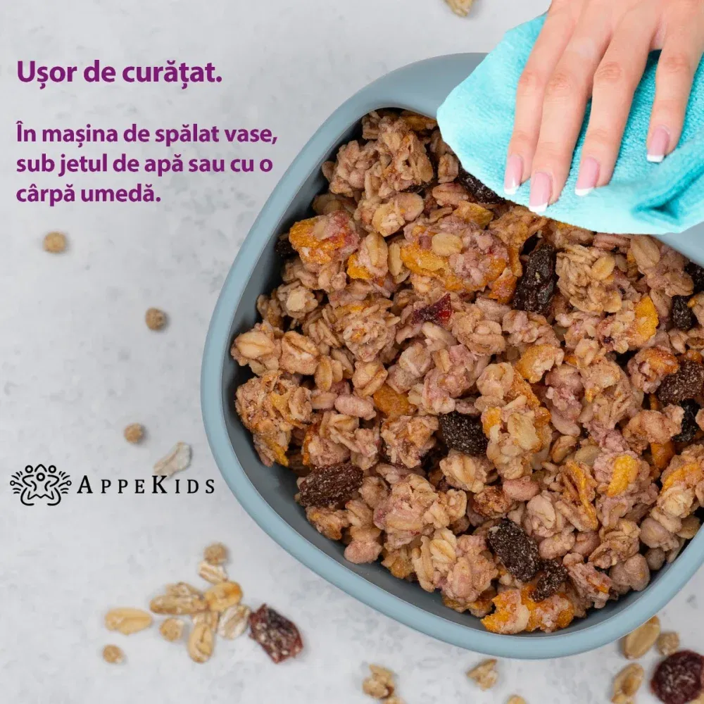 Bol silicon cu ventuză AppeKids Classic, fără BPA, 100% non-toxic. Ideal pentru diversificare bebeluși 6 luni+, rezistent la temperaturi ridicate, ușor de curățat.